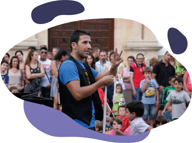Un espectáculo de magia de calle es la mejor forma para acercar la cultura a la gente. Ofrece muchas ventajas para animar cualquier tipo de evento y da un uso lúdico a los espacios públicos. Es un espectáculo que goza siempre de gran aceptación, pues invita a la participación e interacción con el público. Ideal para todo tipo de fiestas en pueblo y ciudades, fiestas patronales y eventos promocionales.